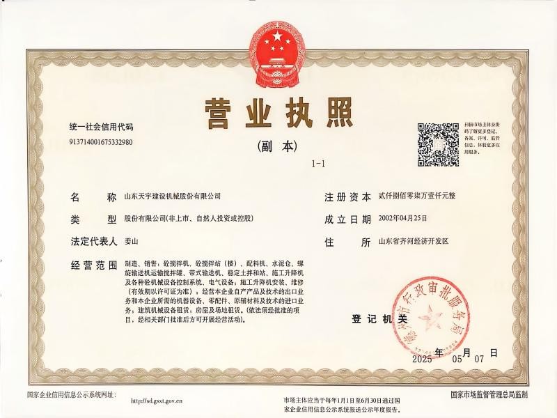Copright:Shandong Tianyu Construction Machinery Co., Ltd.